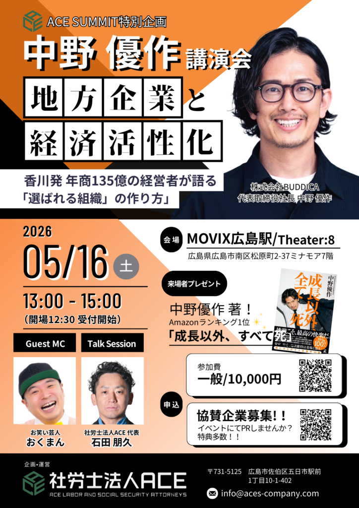 いま日本で最も勢いのある社長、中野優作氏をお招きして 講演会を開催します!